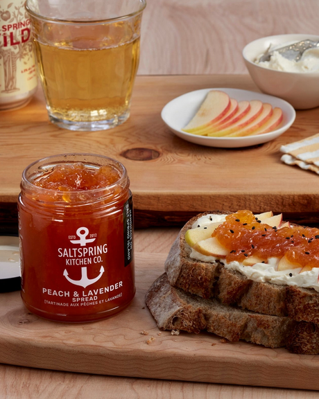 Elevate any gathering with our Peach & Lavender Spread. We love creating versatile flavours, and this jar shines. Spread it over fresh scones, use it as a glaze for anything you're grilling, or pair it with cheeses. Need a delicious drink? Stir some of this into sparkling water, add a lemon wedge, and surprise and delight your guests!