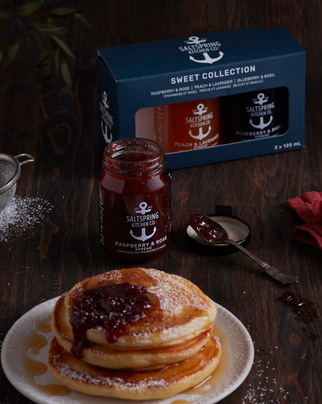 A thoughtful $30 gift when you want something they’ll remember. Great for sharing, sampling, or always having a sweet jar in the fridge. Includes three 125ml jars: Raspberry & Rose, Blueberry & Basil, and Peach & Lavender Fruit spreads.